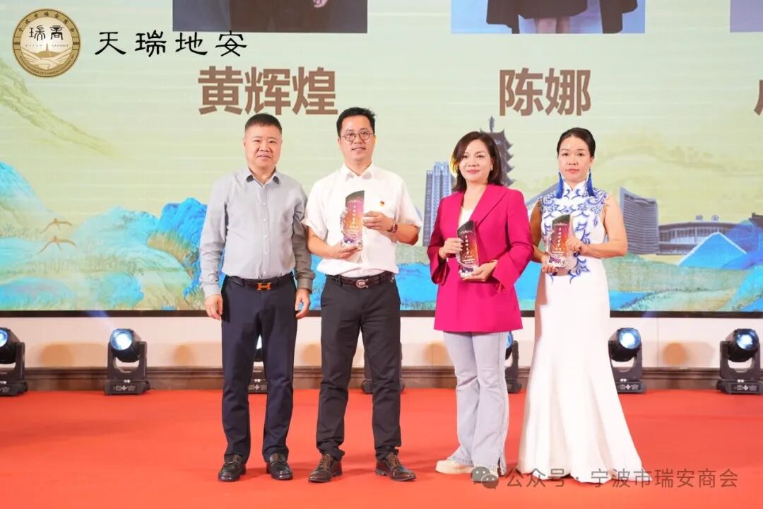 宁波市工商联党组成员、副主席乐敏向瑞安商会二届二次会员大会召开表示祝贺。她指出过去一年,商会在领导班子引领下成绩斐然,荣获多项荣誉。在未来,一要赓续传统,坚持党的领导,规范建设,改革创新,建设一流商会;二是发挥优势,坚守初衷,服务会员,加强联谊,促进高质量发展;三是彰显担当,多参与公益,推进共同富裕。最后祝商会在应晓东会长带领下,在两地党委政府支持下,团结民营企业家,发挥更大作用。名誉会长陈国成为“卓越付出奖 ”黄辉煌、陈娜、卢汝旭颁奖