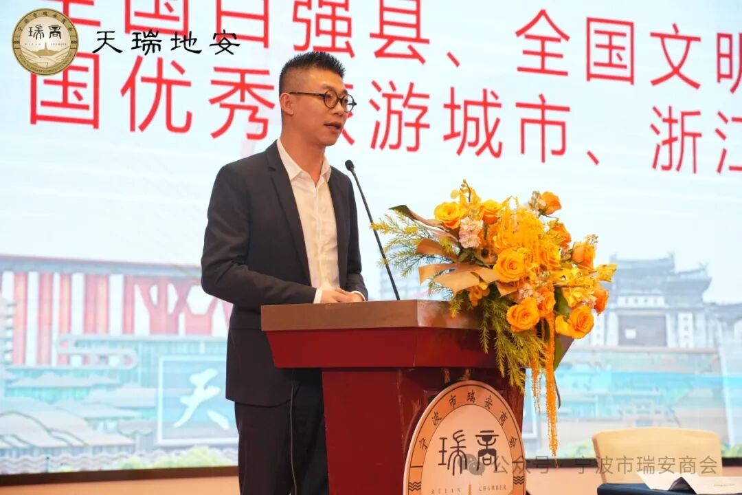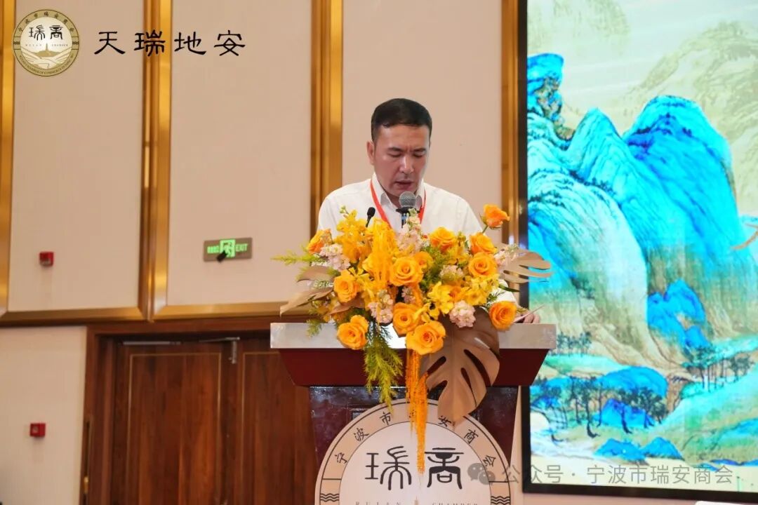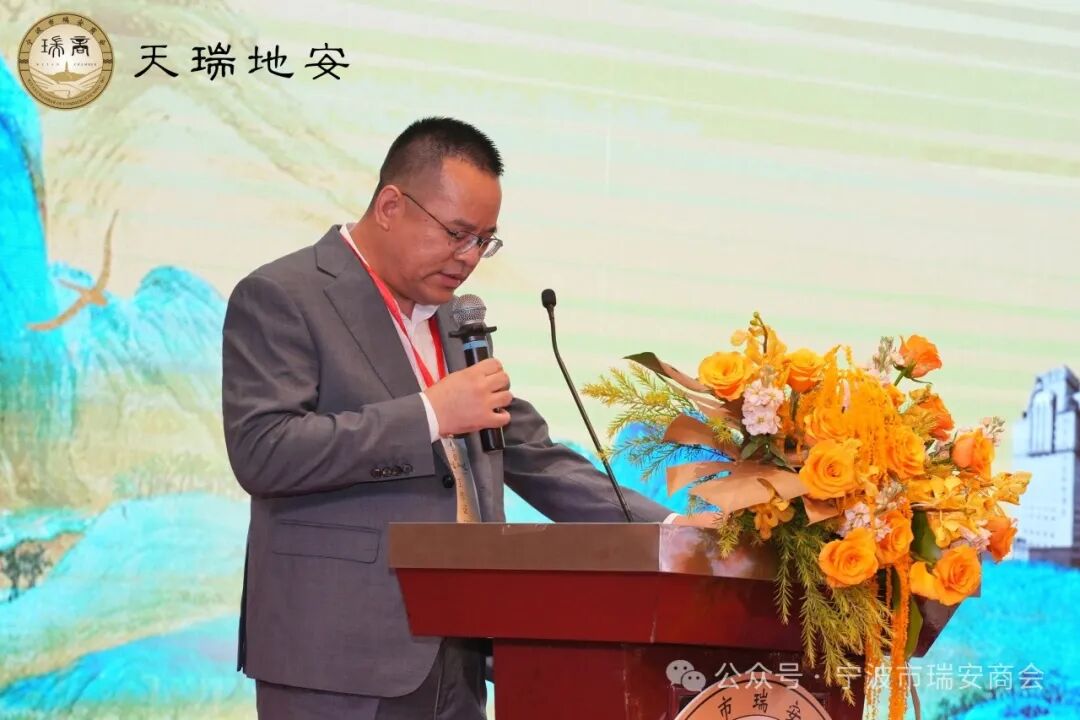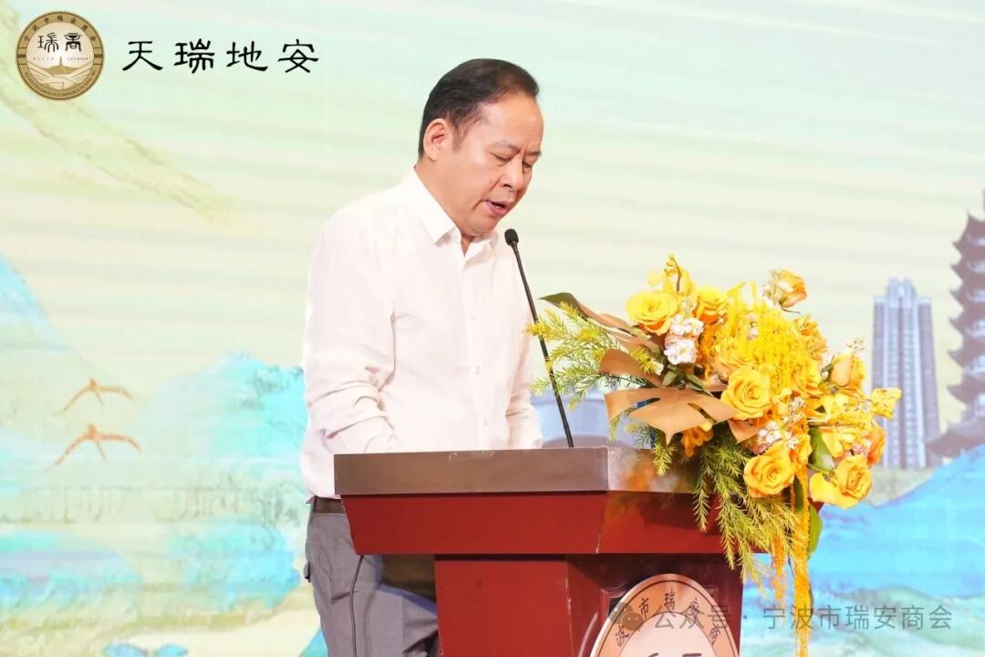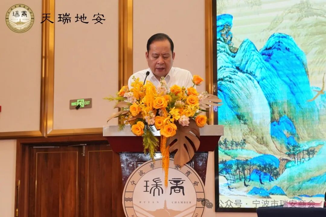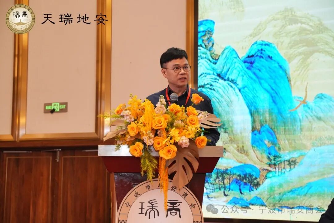 会长应晓东代表商会对各位领导、商会同仁以及会员们的到来表示热烈的欢迎。应晓东表示,过去一年是奋进的一年,也是收获满满的一年,这些成绩离不开甬瑞两地领导的关心支持,更离不开全体会员的共同付出,在此衷心感谢。展望2025年,商会将继续秉持服务会员、回馈社会的宗旨,深化发展,强化服务,积极履行社会责任,为两地经济繁荣作出应有贡献。瑞安市市委常委、统战部部长林圣赞致辞