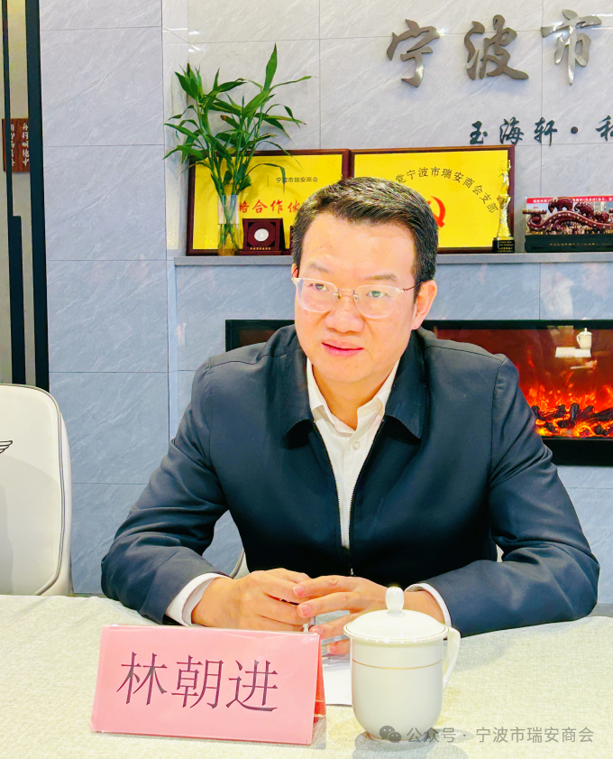 林朝进对商会工作及取得的成绩予以高度肯定与赞扬,指出宁波市瑞安商会扎根异地、拼搏奋进,已然成为瑞安对外展示形象的窗口、企业协同发展的优质平台。同时,他详细阐明此次到访目的,聚焦瑞安发展与招商工作,介绍家乡当下产业规划蓝图,抛出系列优惠政策“橄榄枝”,热忱邀请商会企业家回乡投资兴业,参与到瑞安新兴产业崛起、传统产业升级进程中,共建共赢。此次座谈,是乡情纽带的拉紧加固,更是瑞安“走出去、迎回来”发展战略的生动实践,宁波市瑞安商会将携手为瑞安高质量发展蓄势赋能。