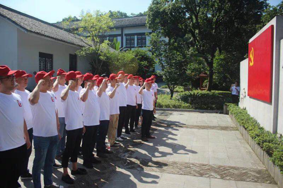 在鲜红的党旗引领下,党员同志们沿着红军足迹,来到凤卧镇的浙江省一大党代会旧址和纪念馆聆听过去的故事,缅怀先烈的丰功伟绩,重温战争年代的“烽火记忆”。