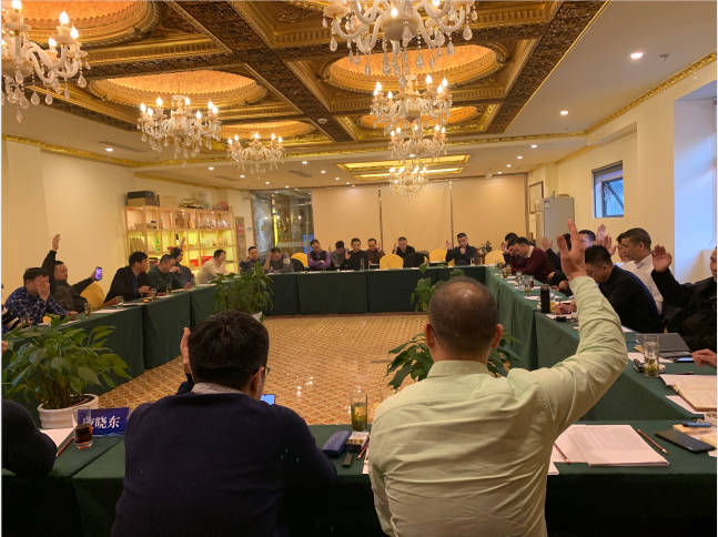 接着,根据会议安排,陈国防会长主持了相关内容,第一项议程是商会章程的修改,涉及到第一章第三条、第一章第四条、第三章第十条,在会上进行充分讨论,并全票通过修订决议。第二项议程是财务出纳人员调整,在会长会议上提出,并在理事会会议上进行投票表决,最终全票通过,同意外聘财务出纳人员,由商会秘书处拟出具体方案,并由会长签字同意即可。第三项议程则是商会成员招新事宜的探讨。在这个环节中,与会人员纷纷根据商会实际情况,结合自身企业运营思路给出了相当多优秀的建议。经秘书处汇总整理后,将酌情采纳并付诸实践。第四项议程,初步确定了2020年商会年会的基本事宜。