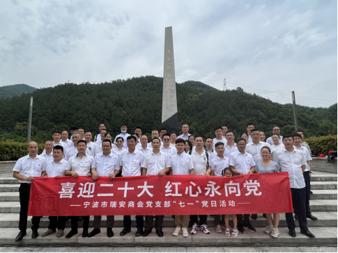 2022年6月25日,宁波市瑞安商会党支部与宁波市温州商会党支部、宁波市鄞州区泰顺商会党支部、平阳县高级人才联谊会宁波分会党支部共同组织各位党员、预备党员、入党申请人赴四明山章水镇革命烈士陵园,开展“喜迎二十大,红心永向党”主题党日活动。