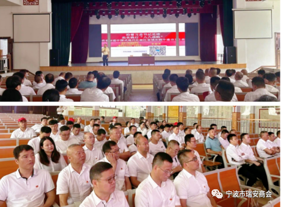 6月17日下午在泗溪镇文化大礼堂开展主题讲座,由鄞州区泰顺商会党支部书记缪丽霞主持。