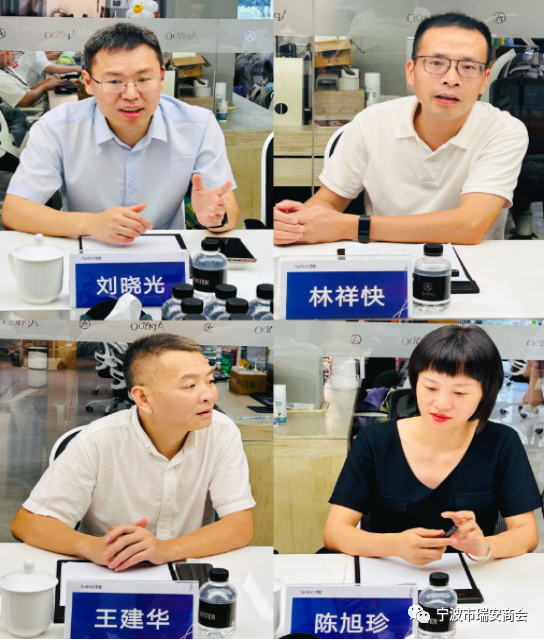 8月15日,瑞安市投资促进服务中心副主任林祥快,东山街道刘晓光书记及副主任王建华、陈旭珍一行,莅临宁波市瑞安商会,进行了深入的招商合作交流座谈。