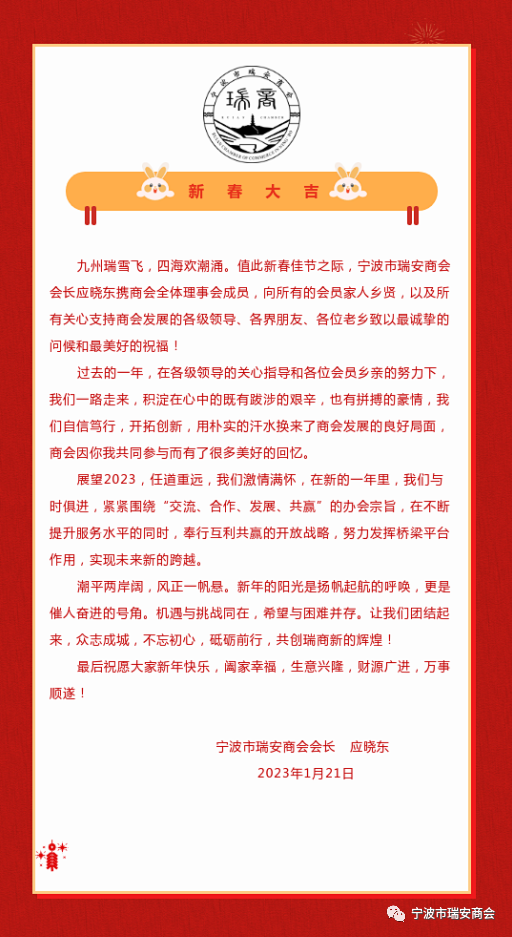 宁波市瑞安商会2023年新春贺词