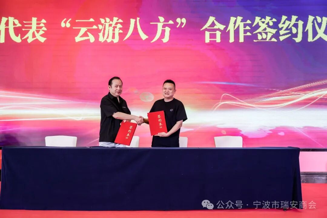 发布会期间,会长应晓东代表宁波市瑞安商会和宁波市西部商会组织联盟签订了“云游八方”合作协议,这为未来双方更深入的交流合作奠定了坚实的基础。