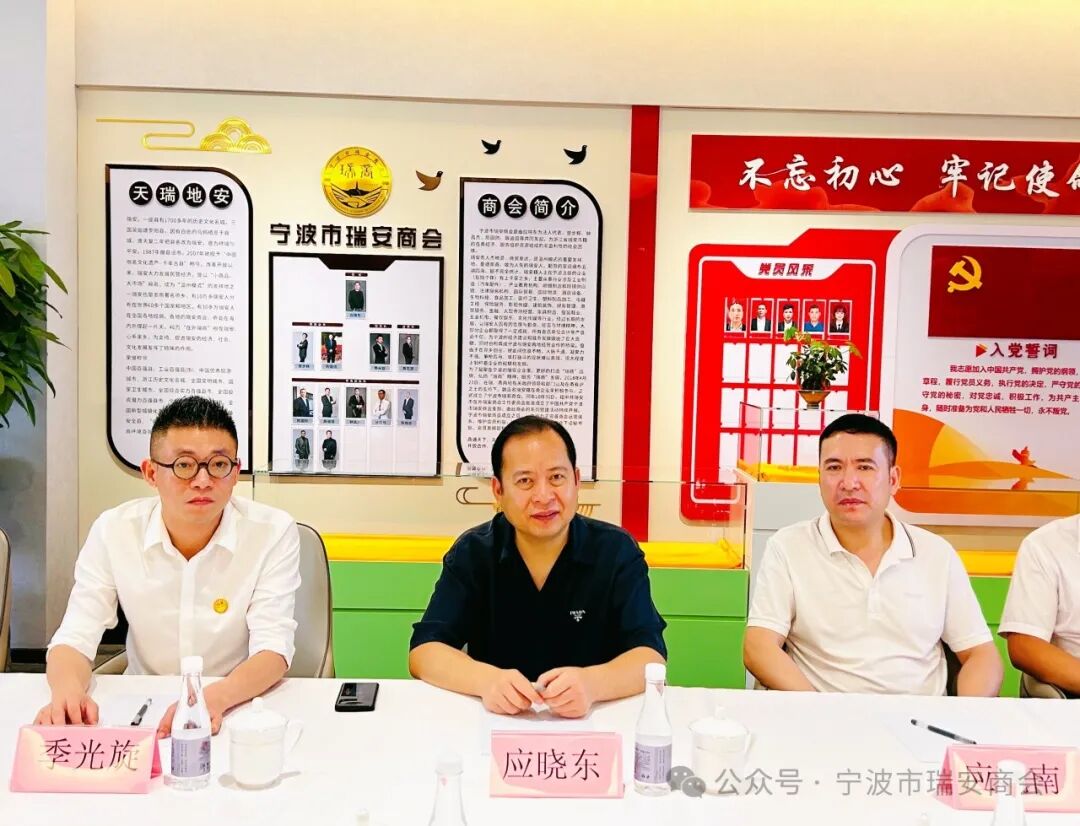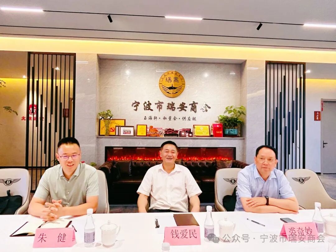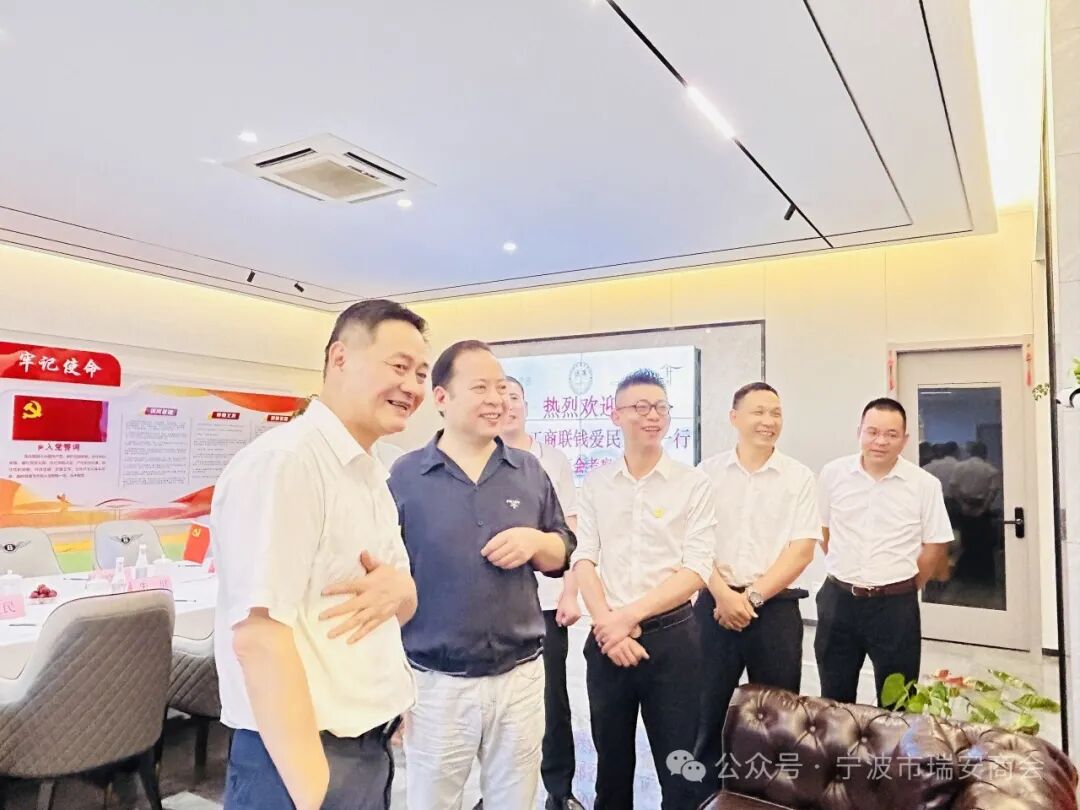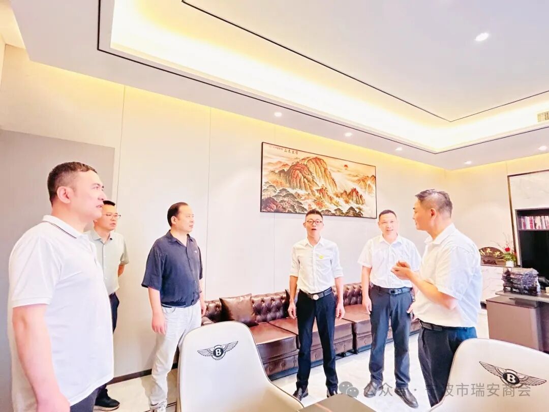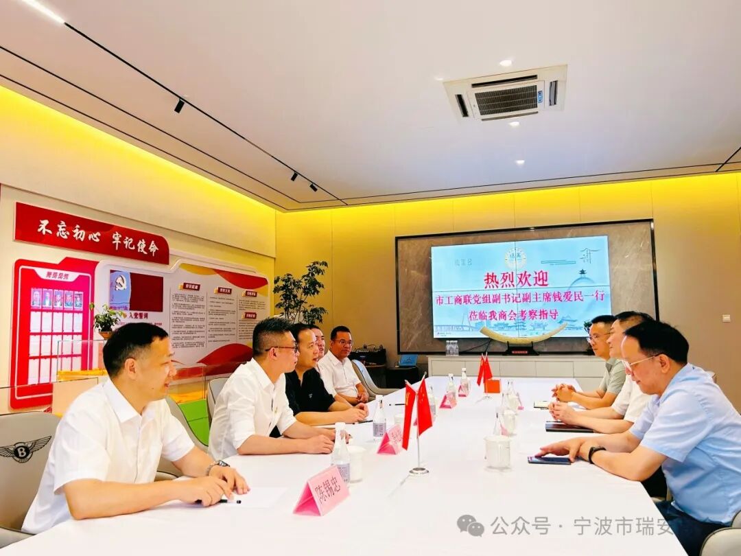 June/21 2024 6月21日,宁波市工商联党组副书记、副主席、二级巡视员钱爱民,组织建设部部长裘奇妙、副部长朱健一行三人到我会调研指导。商会会长应晓东,党支部书记应晓南,秘书长季光旋等参加。 钱爱民一行实地参观了商会办公场所。应晓东详细介绍了商会的未来发展规划,特别是如何加强商会内部凝聚力,促进会员间的交流合作,以及推动商会更好地服务于地方经济和社会发展。 季光旋对商会现有的三大核心版块——玉海轩、私董会、供应链进行了详尽的阐述。特别针对私董会详细讲解了其创办初衷、运作模式及对企业发展的重要意义。 钱爱民对瑞安商会工作表示充分肯定,认为私董会作为一个企业家交流平台,不仅能帮助企业解决经营中遇到的实际问题,还能促进不同行业之间的交流与合作,实现资源共享和优势互补,值得推广总结。 在座谈交流中,钱爱民一行还对商会发展的具体问题作了很好的指导。此次工商联领导莅临我会参观指导工作,不仅为商会的发展提供了宝贵的指导和支持,也进一步加深了商会与工商联之间的联系沟通。未来,商会将继续秉持服务会员、促进发展的宗旨,不断创新工作思路和方法,为会员企业的成长和发展提供更加优质、高效的服务。