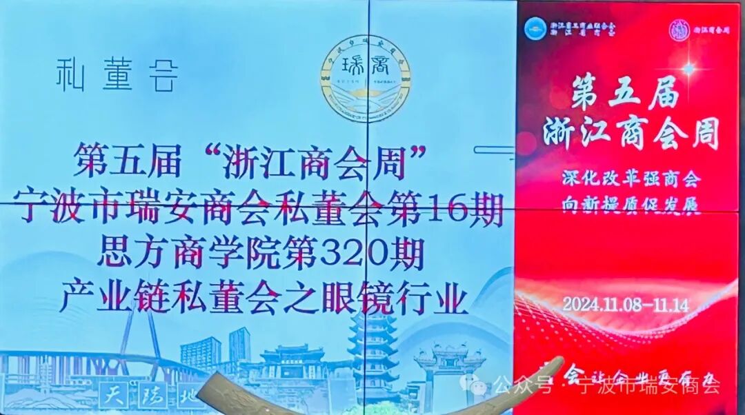 当前,眼镜市场竞争白热化,发展路径日益多元化。在这样的大环境下,如何精准定位、拓展业务,成为了从业者们亟待解决的问题。鉴于在甬瑞商中眼镜从业者众多,宁波市瑞安商会精心筹备了此次“眼镜行业私董会”,旨在为行业同仁搭建交流平台,共探发展新径。