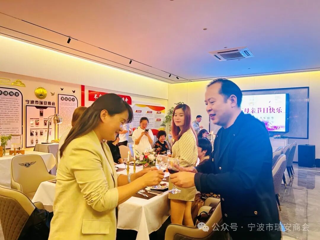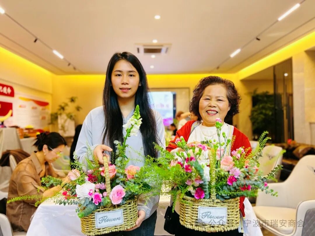 MOTHER’S DAY • ✦ 母亲节快乐 ✦ • ① ✦ • ✦ 在温馨而充满爱意的五月,宁波市瑞安商会为会员们精心策划了一场仪式感满满的母亲节活动。鲜花盛宴,烛光晚宴,让每一位参与的母亲和女士们感受到了别样的温暖与关怀。 ✦ • ✦ 下午时分,二十余位女会员及会员的母亲、太太们齐聚商会办公室,副监事长陈娜为大家带来了一场精彩的花艺讲座。她深入浅出地讲解了花艺知识,分享了插花技巧,并现场指导大家进行实操。在陈娜的引导下,一朵朵鲜花在巧手中绽放成美丽的花篮,仿佛每一朵花都承载着对母亲的深深祝福。 • 插花活动结束后,现场四位男士被邀请担任评委,他们认真评选出四个最美花篮,并为获奖者送上了精美的礼物。这一刻,不仅是对插花技艺的肯定,更是对母爱的赞美和感激。 • ✦ ② ✦ • • ✦ ✦ • 夜幕降临,商会的大门缓缓打开,一场浪漫的烛光晚宴正式拉开帷幕。无论是年逾八旬的老妈妈,还是手牵小儿的新手妈妈,她们都满面笑容地款款进场入座。在悠扬的“烛光里的妈妈”音乐声中,秘书处提前联系家属录制的祝福小视频在屏幕上播放,大家惊喜地看到自家孩子在屏幕上给自己送上真挚的祝福,无不感动得热泪盈眶。秘书长季光旋更是为三位年长母亲送上了精心准备的礼物,表达了对她们的敬意和祝福。 ✦ • ✦ 晚宴现场还上演了温馨的一幕:三位会员为自己的母亲洗脚,其中包括常务副会长陈锡忠为年长80多岁的老母亲洗脚,也有不到10岁的小男孩为妈妈洗脚。这一举动不仅是对母亲的感恩和回报,更是对中华传统美德的传承和弘扬。那温馨的一幕幕让在场的每一位母亲都感动得泪流满面。 MOTHER’S DAY ✦ • ✦ 红酒、牛排、西餐......烛光晚宴上,大家边享受美食,边相互认识、相互介绍。会员们纷纷表示,这是她们第一次真正意义上过的一个母亲节,也是来宁波这么多年第一次找到如此温暖的“家”......她们感谢商会为大家组织了一个如此有温度的节日,让母亲节变得更有意义。 ✦ • ✦ 应晓东会长的到场更是将活动推向了高潮。应会长向大家表达了热烈的欢迎和衷心的祝福,并表示商会就是大家的家,欢迎大家常来喝茶聊天、分享生活。他还表示,商会会尽最大的努力去帮助大家解决困难和问题。 ✦ • ✦ 在“宁波市瑞安商会祝天下母亲节日快乐”的美好祝愿中,本次活动圆满落幕。会员们带着自己亲手插制的花篮,脸上洋溢着幸福的笑容,满载着感动和温暖离开了商会。 • ✦ 宁波市瑞安商会 ✦ •