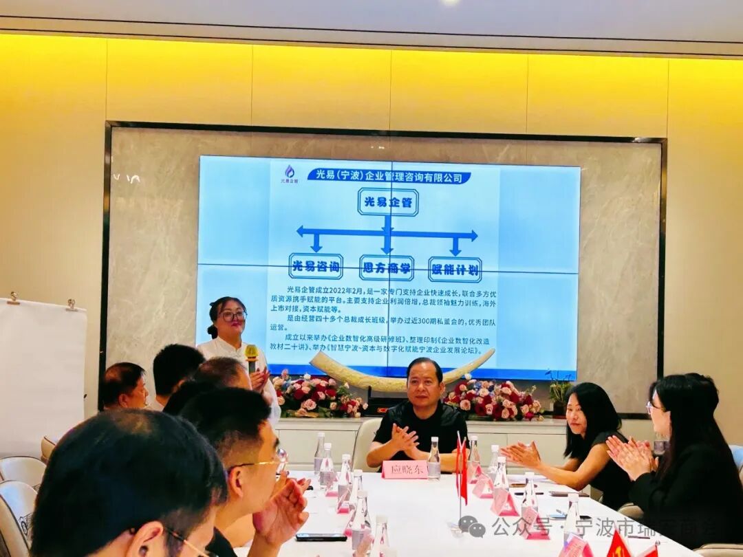6月私董会 宁波市瑞安商会 01 在全球经济飞速变革的时代背景下,企业家们肩负着引领行业进步、促进经济发展的重任。面对前所未有的机遇与挑战,宁波市瑞安商会始终坚守“持续学习、创新发展”的核心理念,积极打造资源共享、交流互鉴的学习型平台——私董会,助力在甬企业家共同成长。 02 自私董会启动以来,商会已成功举办了八期活动,吸引了众多政府领导、行业精英的积极参与和观摩指导。第八期私董会更是汇聚了宁波市工商联组建部二级调研员戴利彬、北仑区妇联主席许海芳、高新区贵驷街道办事处主任金怡、宁波老年大学主任汪翔等领导嘉宾,以及来自律所、银行等各行各业的资深投资人。 03 活动现场,各位与会者围绕案主企业面临的实际问题展开热烈讨论,共同探讨解决方案和发展路径。黄誉菲老师以其丰富的经验和深厚的专业素养,引导大家深入剖析问题本质,寻找切实可行的解决方案。 04 参加私董会的企业家们纷纷表示,每次参加都有新的收获和感悟。他们通过与其他企业家的交流,不仅找到了解决问题的思路和方法,还能够结识志同道合的合作伙伴,共同拓展业务领域和市场空间。 工商联戴利彬认为私董会围绕解决企业经营中的一个具体现实问题,经过多轮次,人人从不同角度,由浅入深,共同把问题找准,原因析透,措施提实,使当事人解决问题、参与者汲取智慧,值得学习借鉴和推广。 05 我们坚信,私董会将继续发挥重要作用,为在甬企业家们提供更多更好的学习机会和交流平台。 最后,我们诚挚邀请更多企业家和商会同仁加入我们的行列,共同参与到私董会活动中来。